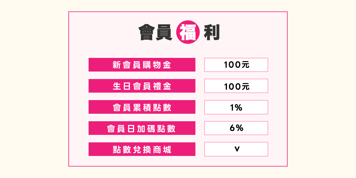 3. 會員消費可累積點數,每消費100元=1點(每筆消費回饋1%)。